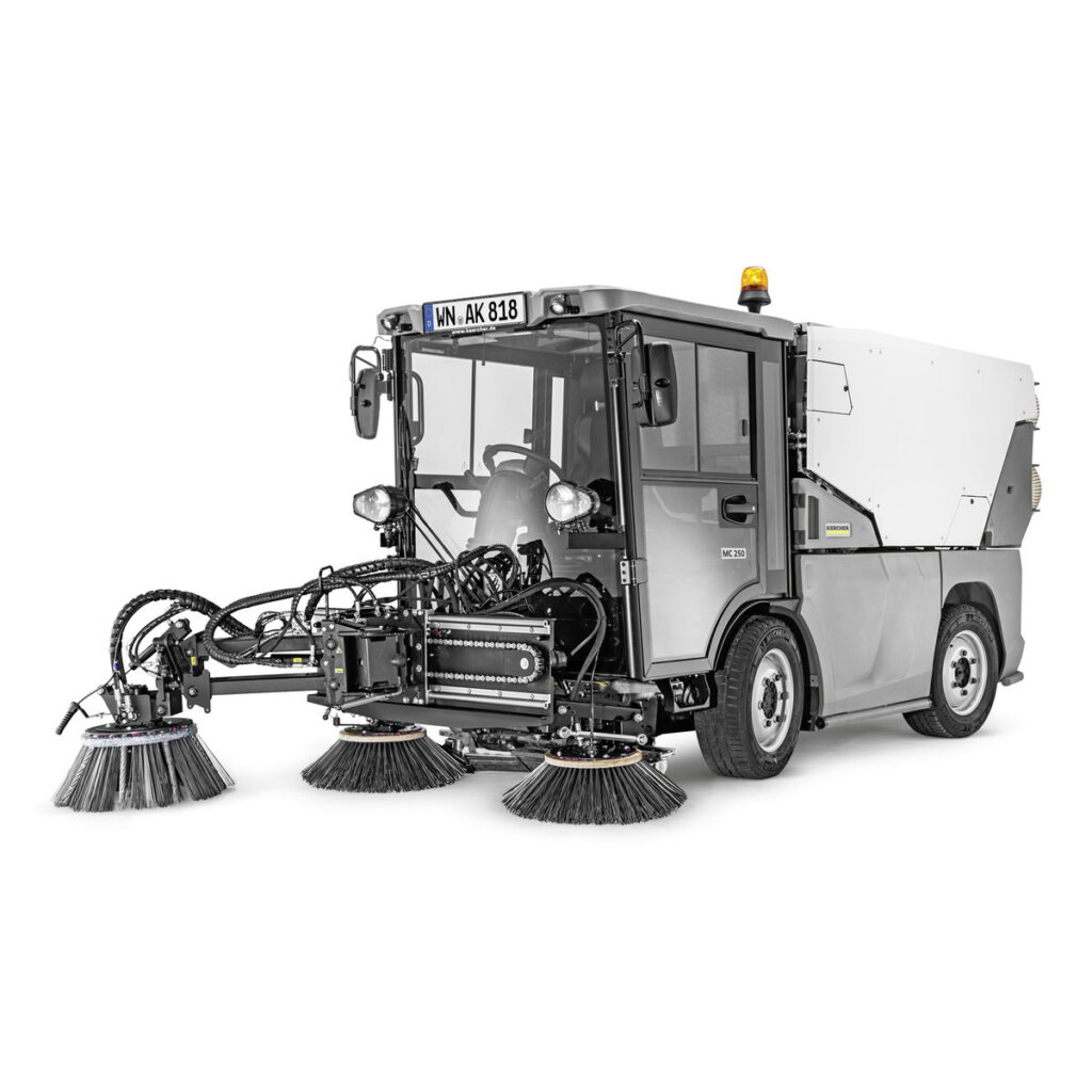 Our sweepers and municipal implement carriers, ranging from 26 to 129 HP (18.9 to 95 kW), deliver exceptional performance for cleanliness in public areas. They excel in providing flawless results, durability, and versatile applications. Special attachments are available to maximize their potential, offering optimal solutions tailored for diverse uses. These attachments are developed in collaboration with renowned manufacturers specifically for Kärcher implement carriers, combining advanced technology and application expertise to ensure efficient machine utilization and exemplary economic performance